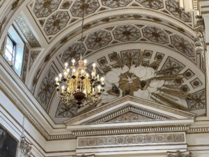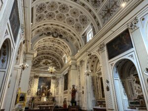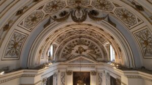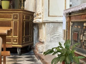 Ti invito ad alzare lo sguardo sul lato destro lì si apre il Matroneo dove un tempo molto probabilmente le suore del convento prendevano parte alle funzioni.