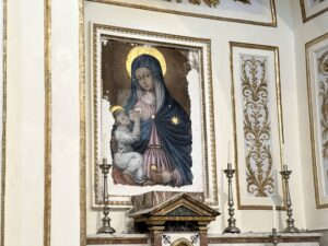 Subito dopo è posta una cappella con volta ribassata dove al centro è posizionato un altare realizzato con marmi policromi, con sopra uno splendido tabernacolo e sopra di esso è realizzato un affresco che raffigura Maria Santissima delle Grazie in un'iconografia tradizionale della Madonna del Latte, un tema molto diffuso nell'arte sacra cristiana. L'affresco è collocato in una cornice decorata con oro e marmo. L'immagine mostra la Vergine Maria mentre allatta il Bambino Gesù, un gesto simbolico di nutrimento spirituale e amore materno.