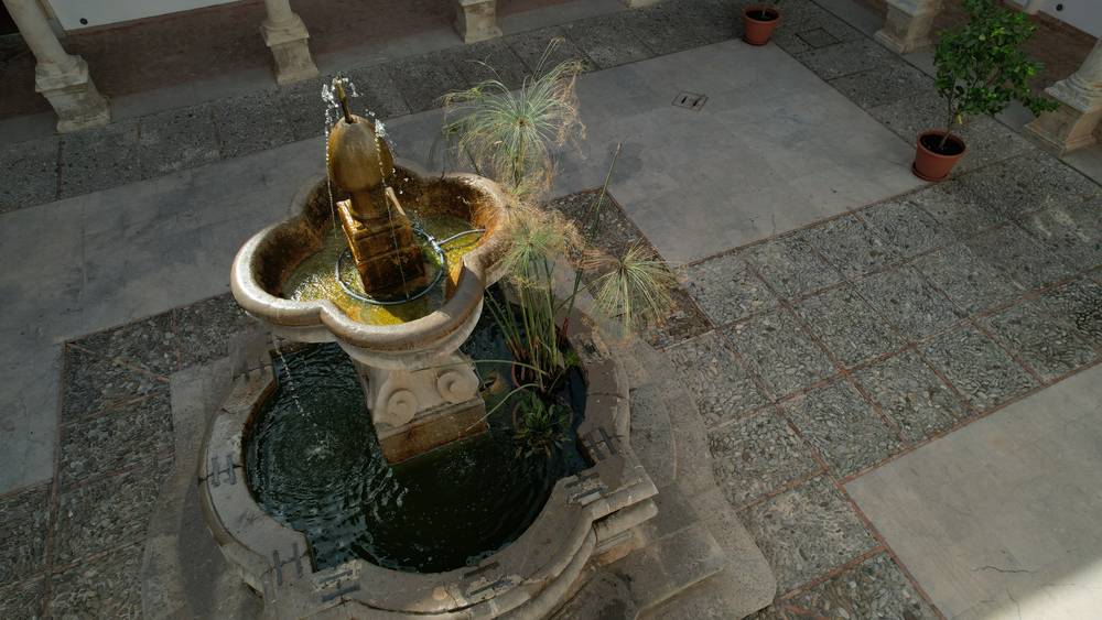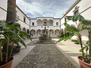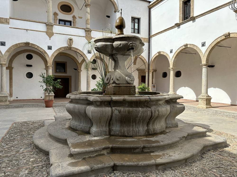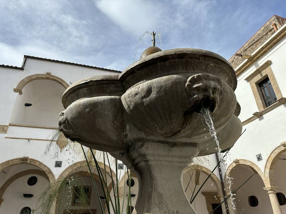 Fu durante la sua permanenza dentro il convento che Matteo Orlando maturò la propria fede e vocazione sacerdotale. Il 20 ottobre del 1628 dopo l’anno del noviziato, fece la sua solenne professione. Non dimenticando quindi negli anni, il gesto ricevuto dai suoi confratelli, ormai vescovo, decise di donare e fare collocare la fontana al centro dell'atrio con l’apposizione degli stemmi vescovili marmorei ai quattro lati del porticato, posti sotto i balconcini.