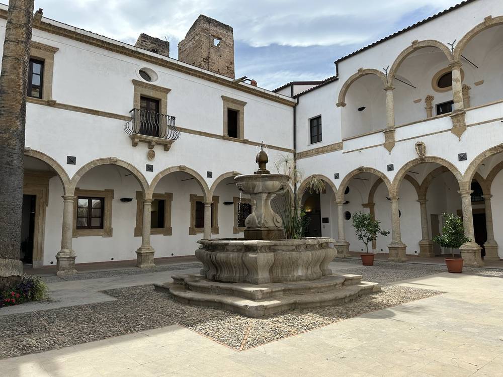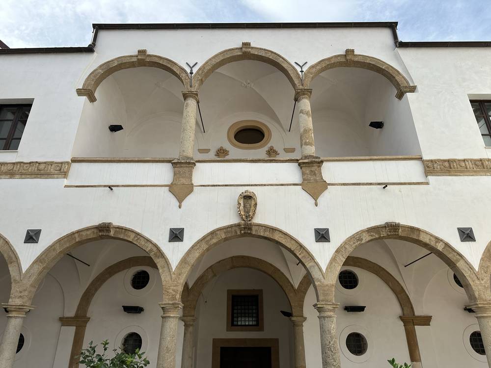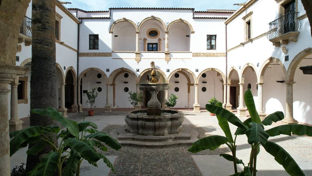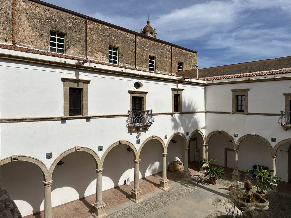 Il Chiostro del convento è uno degli elementi più suggestivi del complesso monastico. Ha forma quadrangolare e presenta un portico con arcate a tutto sesto sorrette da colonne in pietra, tipiche dell'architettura rinascimentale siciliana. Il chiostro è il cuore della vita monastica, dove i frati si ritiravano per la preghiera e la meditazione. Gli ambienti monastici si sviluppano su quattro lati all’interno dei quali si trovano le camere del dormitorio, il refettorio e un loggiato a tre arcate che si affaccia sul chiostro. Il complesso conventuale fu eretto su un giardino nominato di “Gatto” mentre resta affiancato alla struttura il giardino chiamato di Giandomenico Giannello, accessibile dalla porta situata in fondo a sinistra guardando la parete su cui insiste il loggiato.