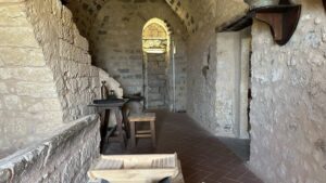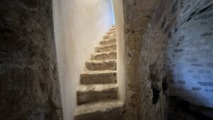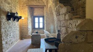 Ti invito adesso a proseguire la tua visita, salendo attraverso la scaletta posta alla fine delle stanze delle cucine, e raggiungere gli ambienti di soggiorno del Castello.