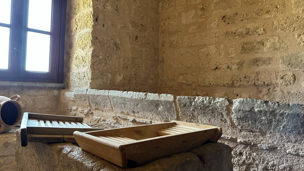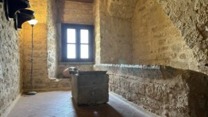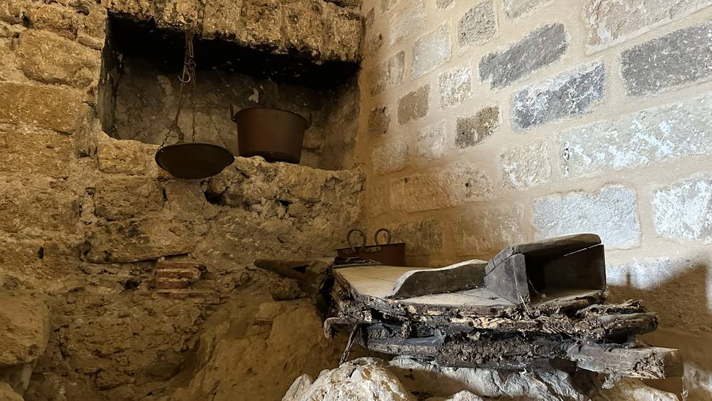 Restano oggi visibili i due grandi lavatoi, posti sotto un vano scala, e i vani di alcune zone di cottura, rintracciabili dalla presenza di canne fumarie, su cui venivano messi a cucinare gli arrosti, le paste ripiene, le torte, i pasticci in crosta e gli animali "come vivi" (ricomposti e rivestiti del loro piumaggio) decorati con oro o ricoperti di colori.