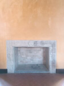 Lo spazio è abbellito da un camino impreziosito dallo stemma dei La Grua, inquadrato da ampie finestre con ricchi portali cinquecenteschi che permettono l'affaccio sul cortile del Castello.