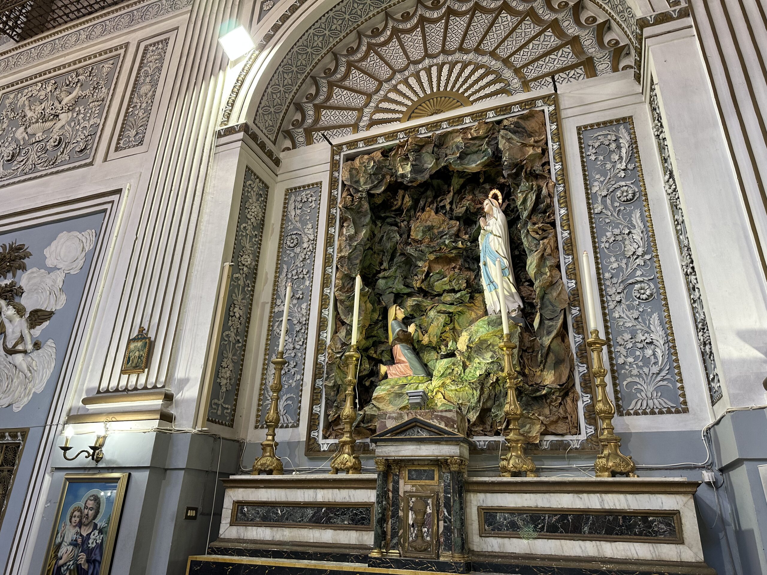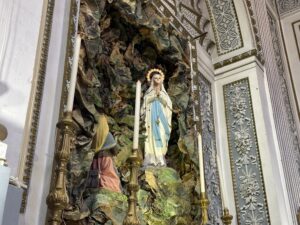 Terza cappella: statua della Madonna di Lourdes (prima c’era un dipinto rubato).