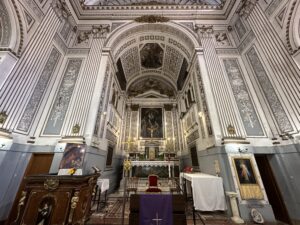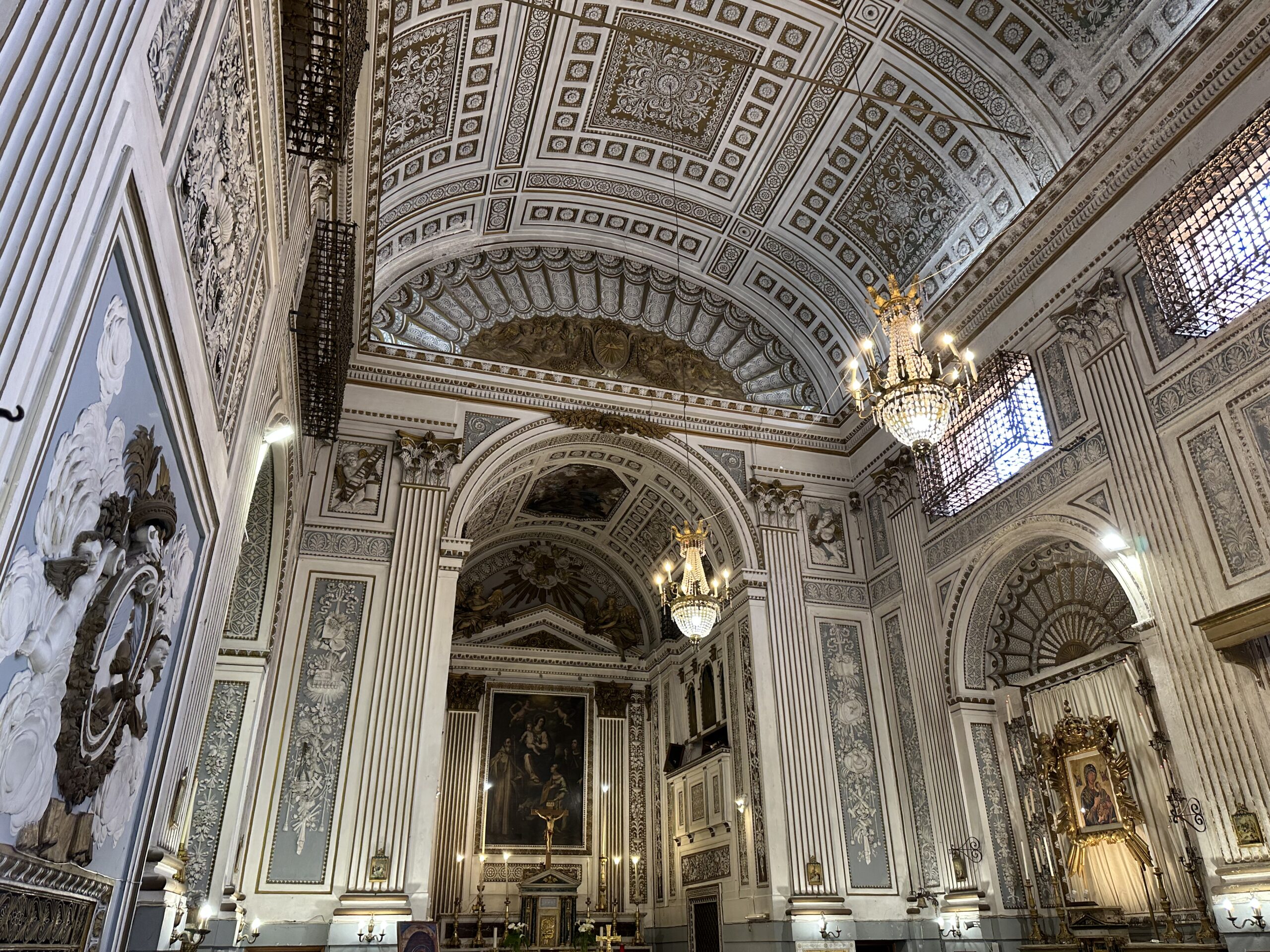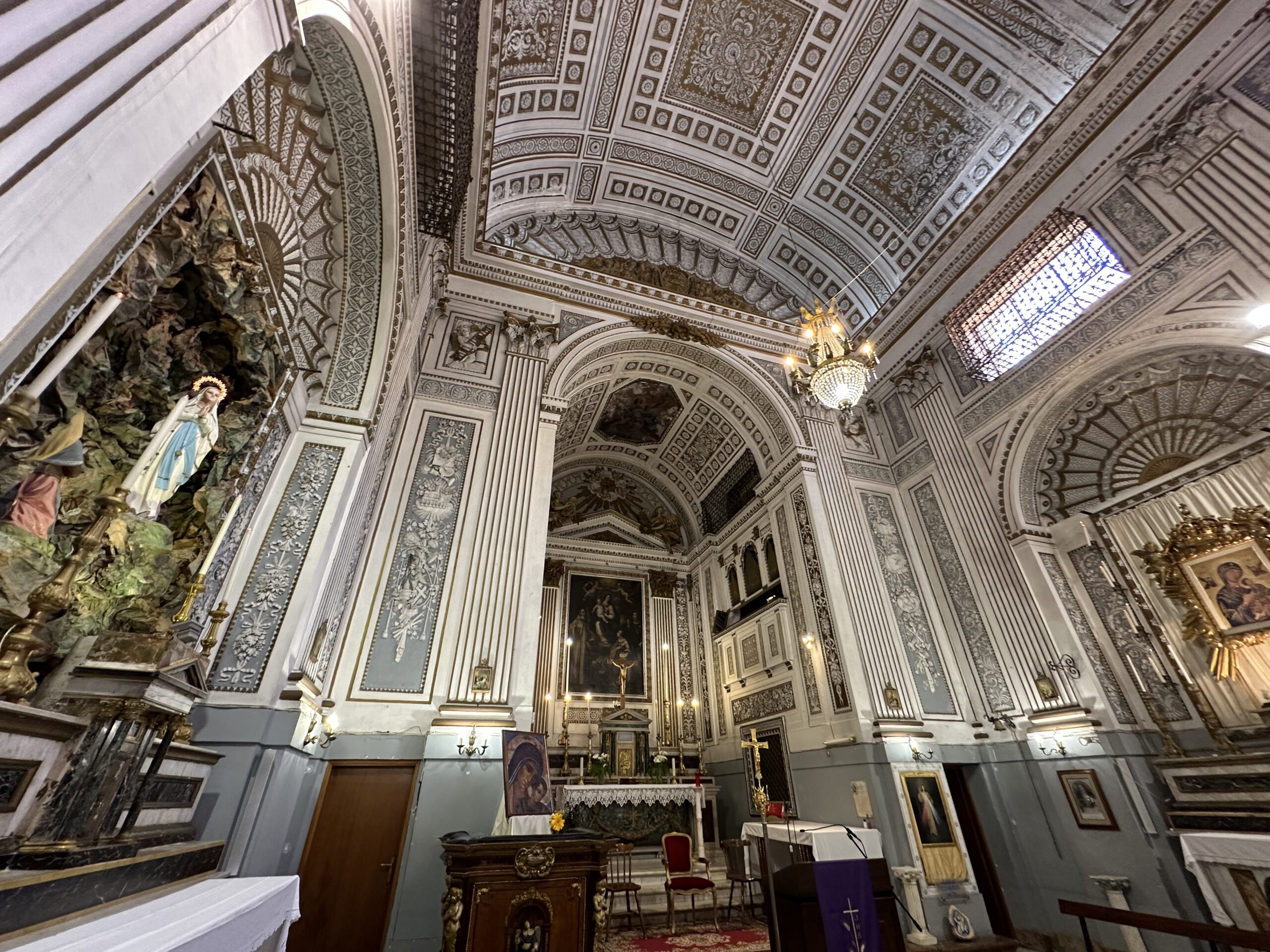 Nel 1700 la chiesa fu restaurata in stile neoclassico. L’artista Tommaso Firriolo decorò l’interno. Usò stucchi bianchi e dorati: fiori, angeli, figure strane.