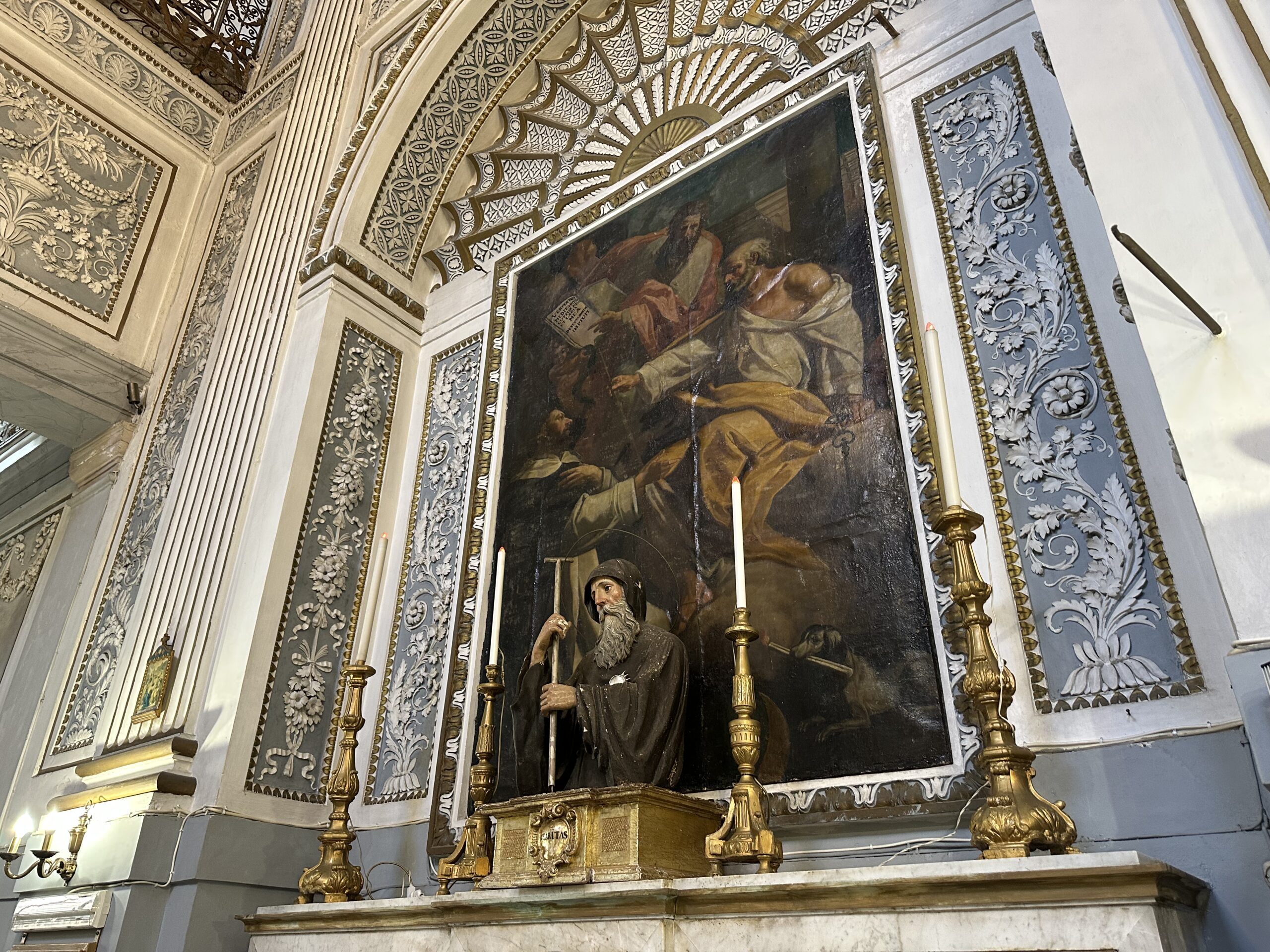 Prima cappella a sinistra: statua in legno di San Francesco di Paola.
