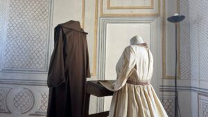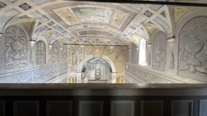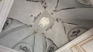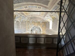 Ti invito adesso ad attraversare il Matroneo, godere della bellezza della decorazione della Cappella, per poi proseguire verso la stanza di soggiorno principale del Castello.