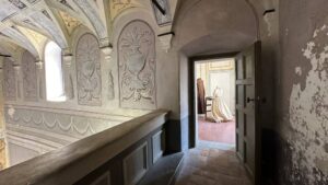 Questa stanza ti immette, attraverso la porta posta alla tua sinistra, nel Matroneo della Cappella del Castello.