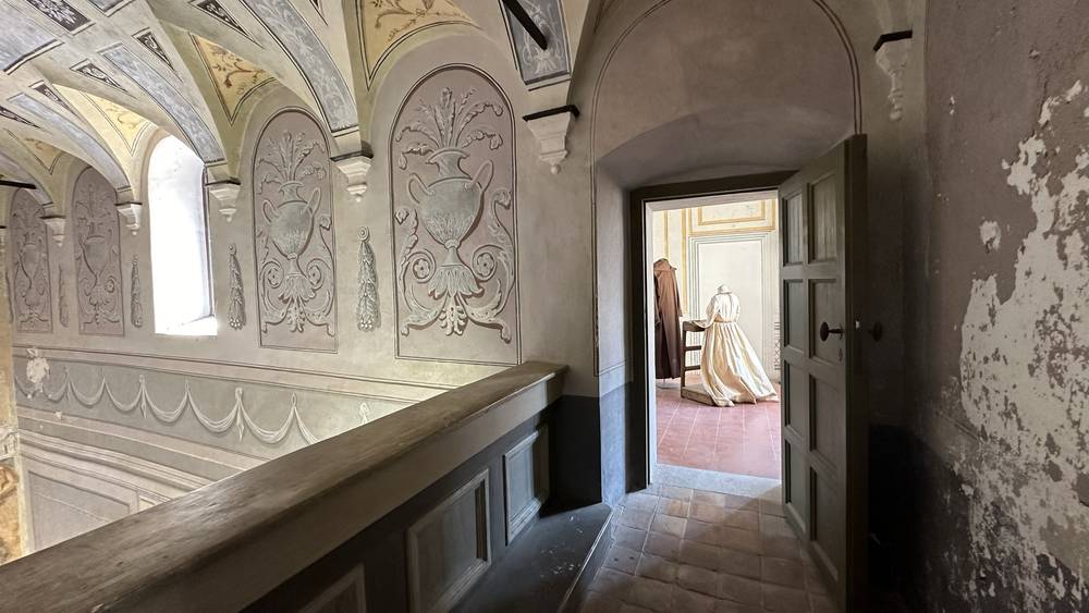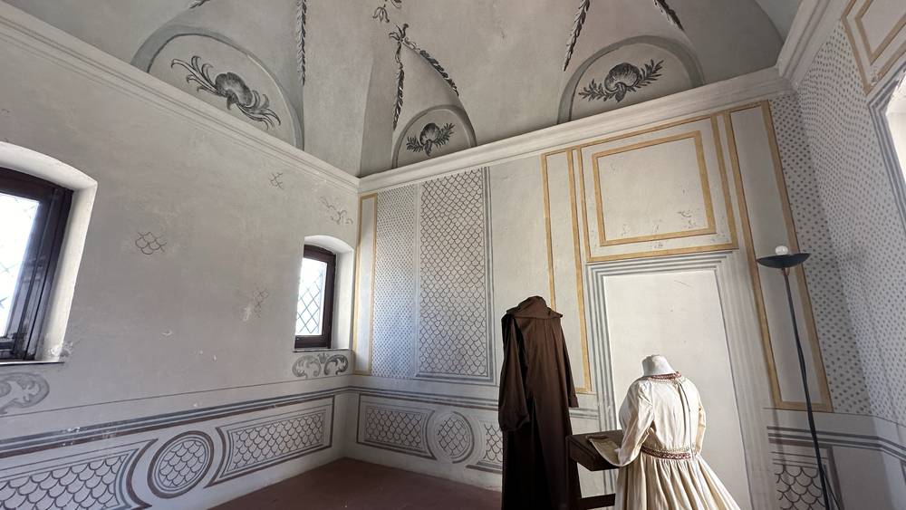 Le stanze che visiterai sono tutte affrescate, mostrando spesso sovrapposizioni di stili diversi, testimonianza dei numerosi lavori e abbellimenti avvenuti nel tempo.