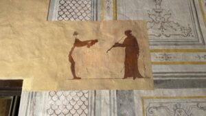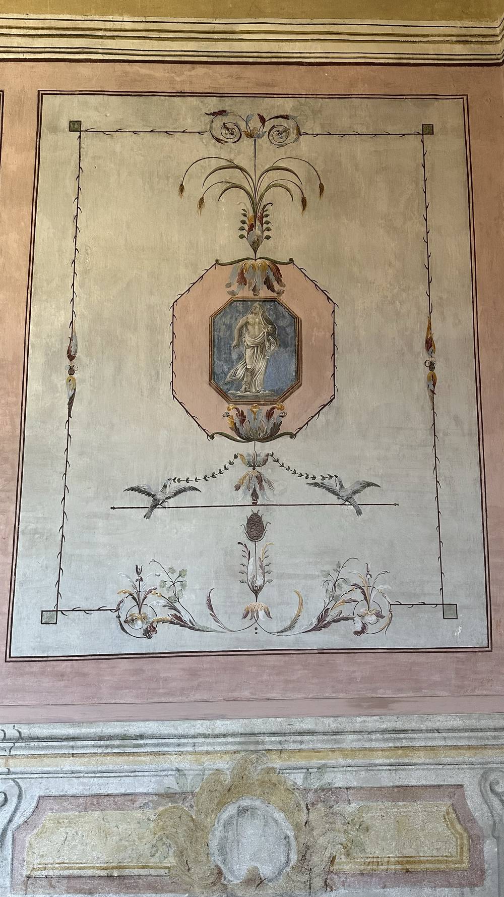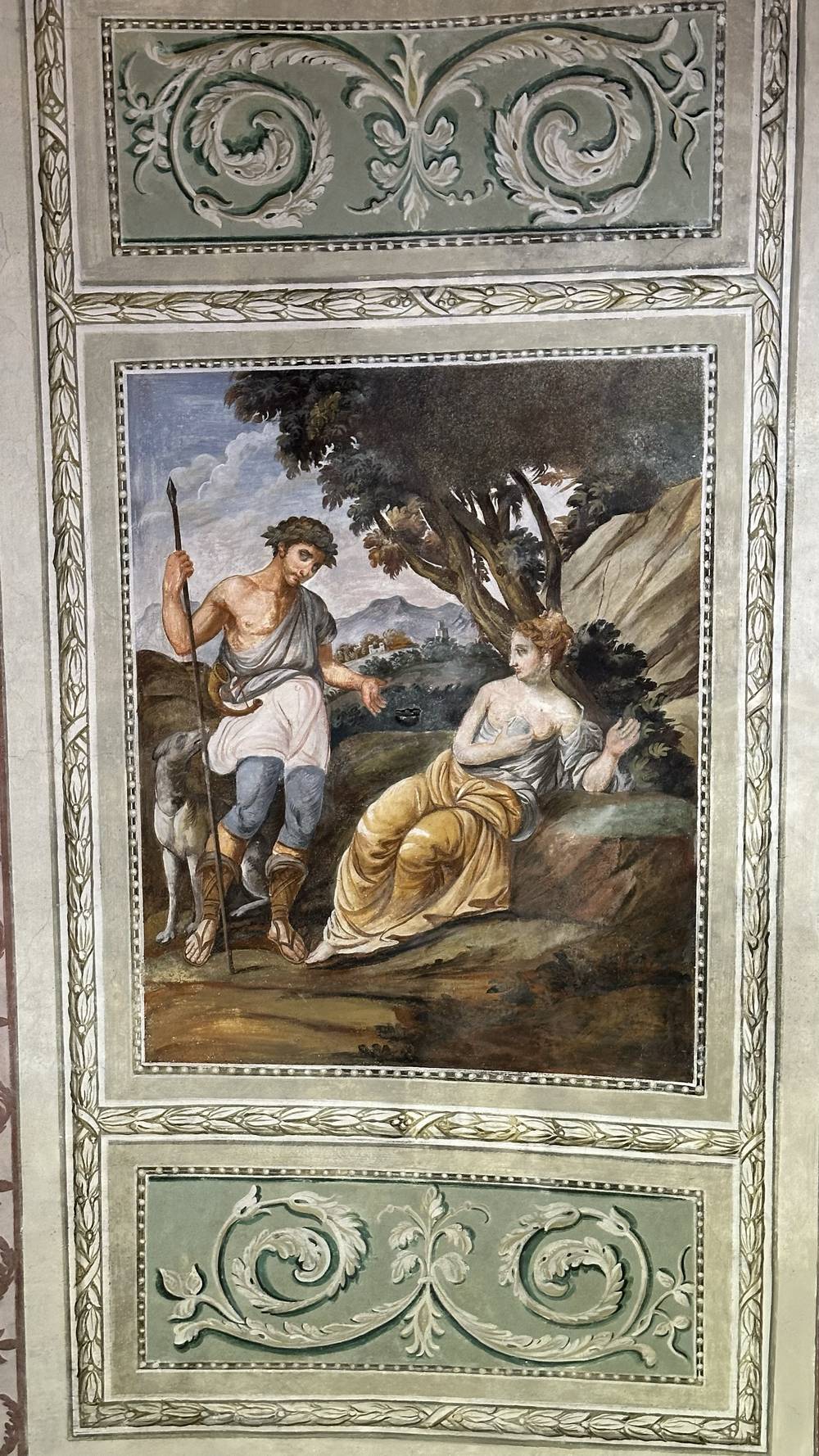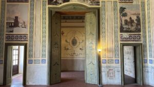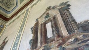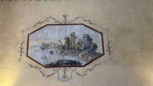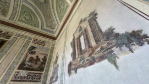 La stanza successiva riprende lo stile pittorico dello studio adiacente all’alcova, con vedute di paesaggi antichi.