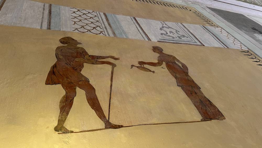 Proseguendo attraverso la porta al centro della parete, raggiungi la Stanza Pompeiana.