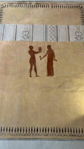 In questa stanza gli artisti hanno applicato i colori tipici pompeiani: rossi, ocra e neri, ispirandosi alle domus di Pompei.
