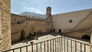 Avvicinati al balcone per ammirare lo splendido atrio del Castello, poi prosegui attraverso la porta a destra del balcone.